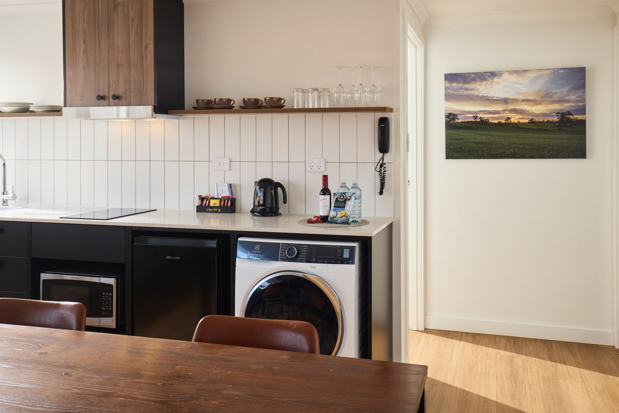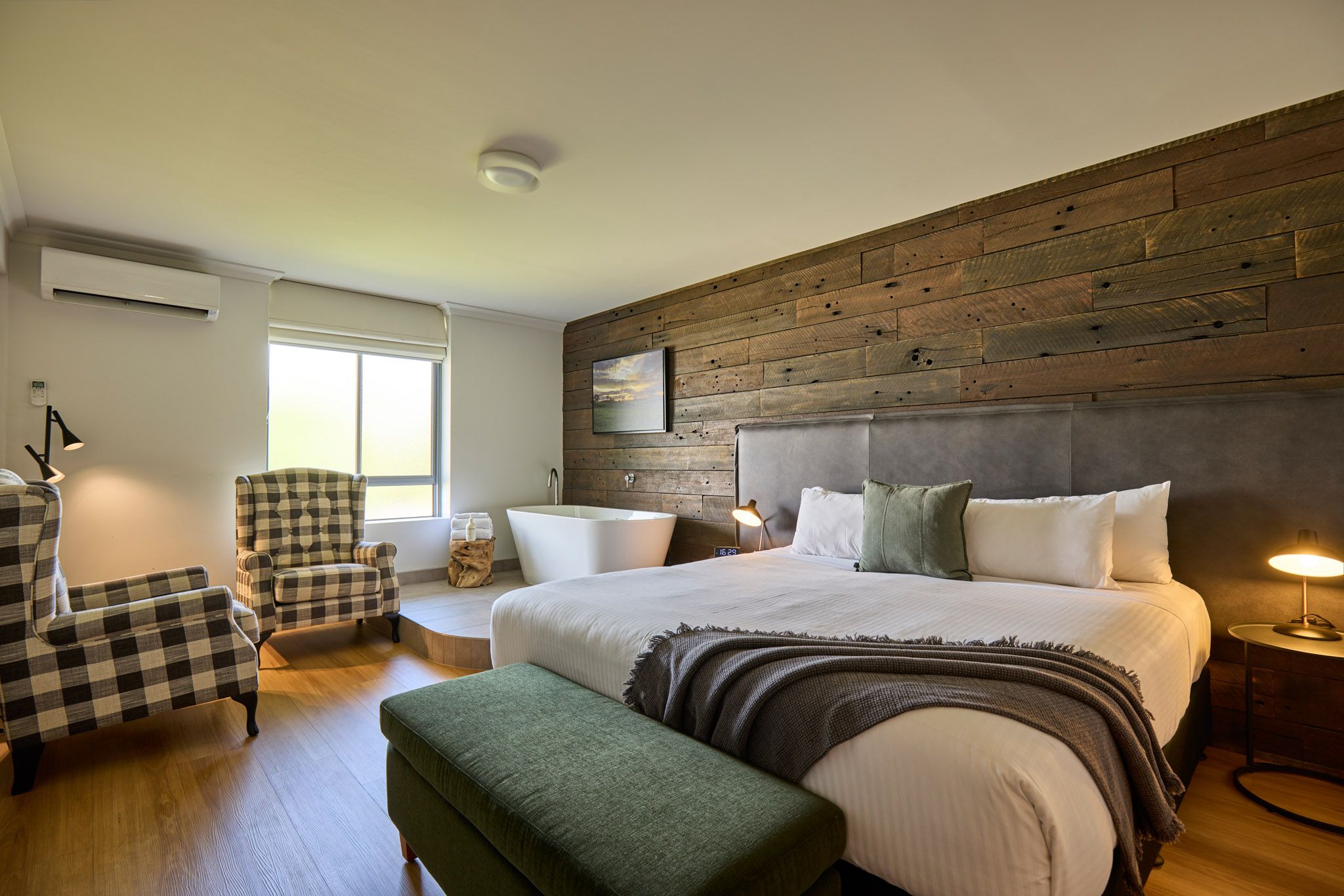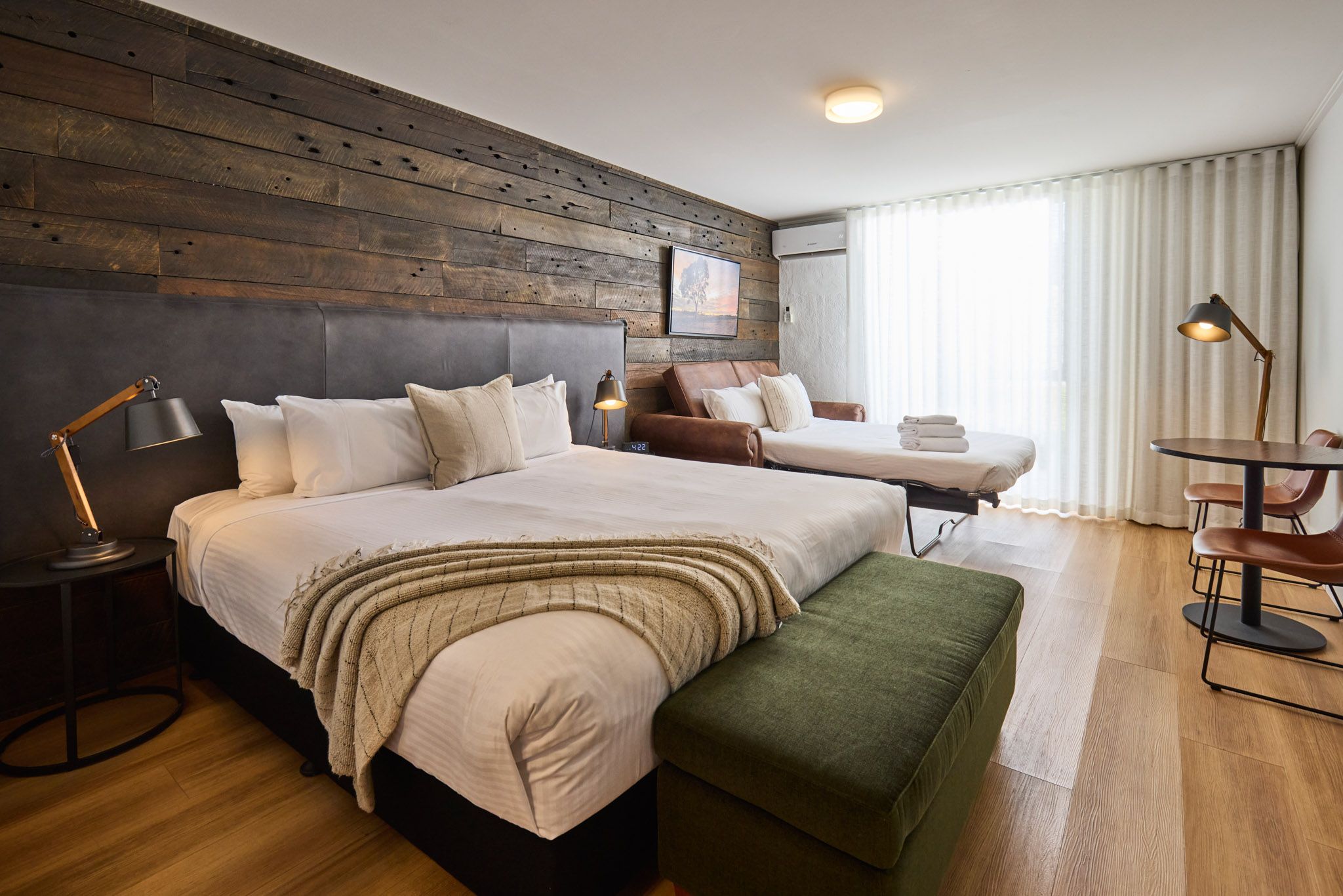 Enjoy the modern comforts of our newly refurbished rooms, thoughtfully styled to reflect the elegance of wine country living. Each room features a private ensuite with a walk-in rain shower and premium amenities for a touch of indulgence. Sink into a luxurious king-size bed (configurable as two singles if preferred), dressed in high-quality cotton bedding. Families are well accommodated with a convenient pull-out sofa bed.