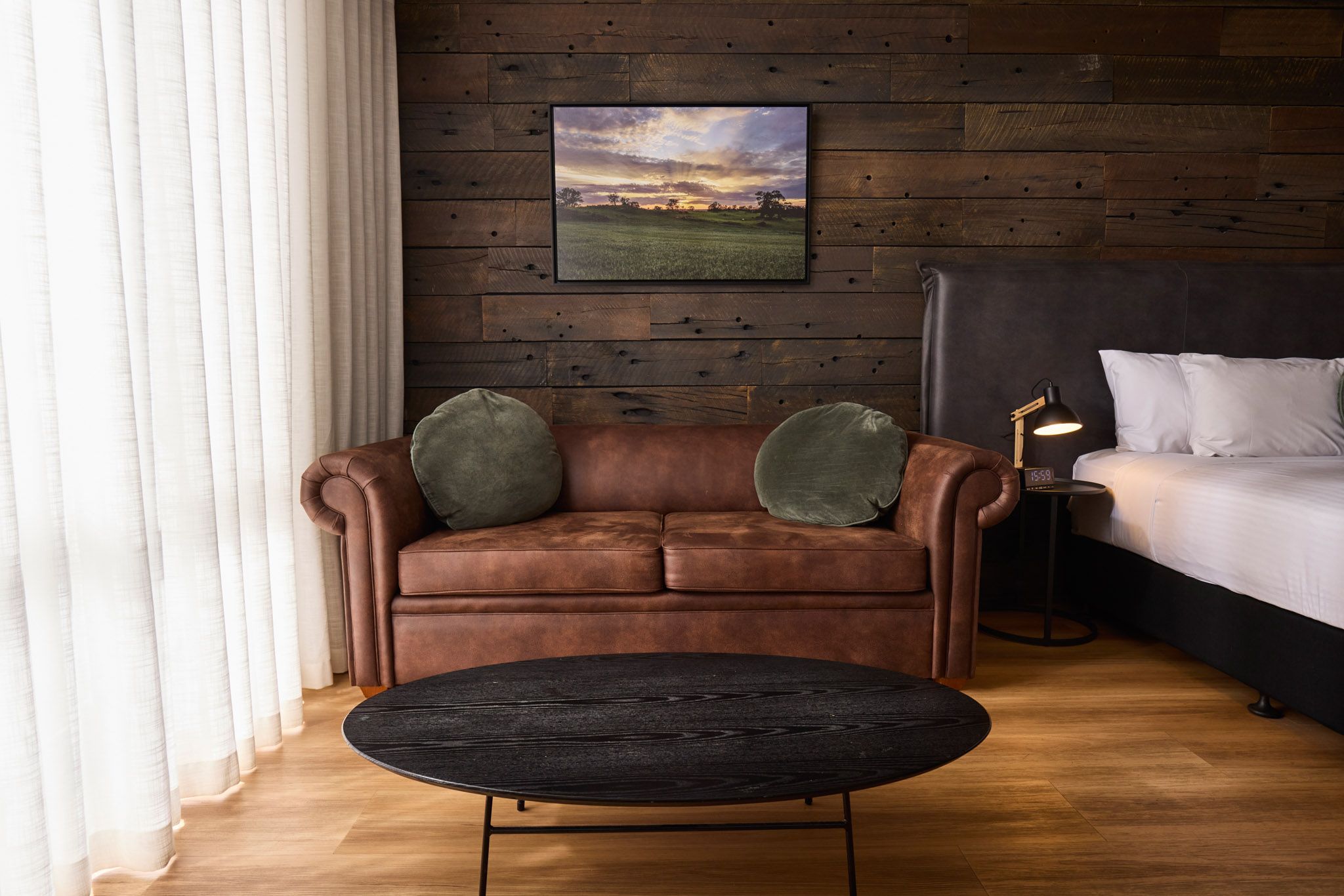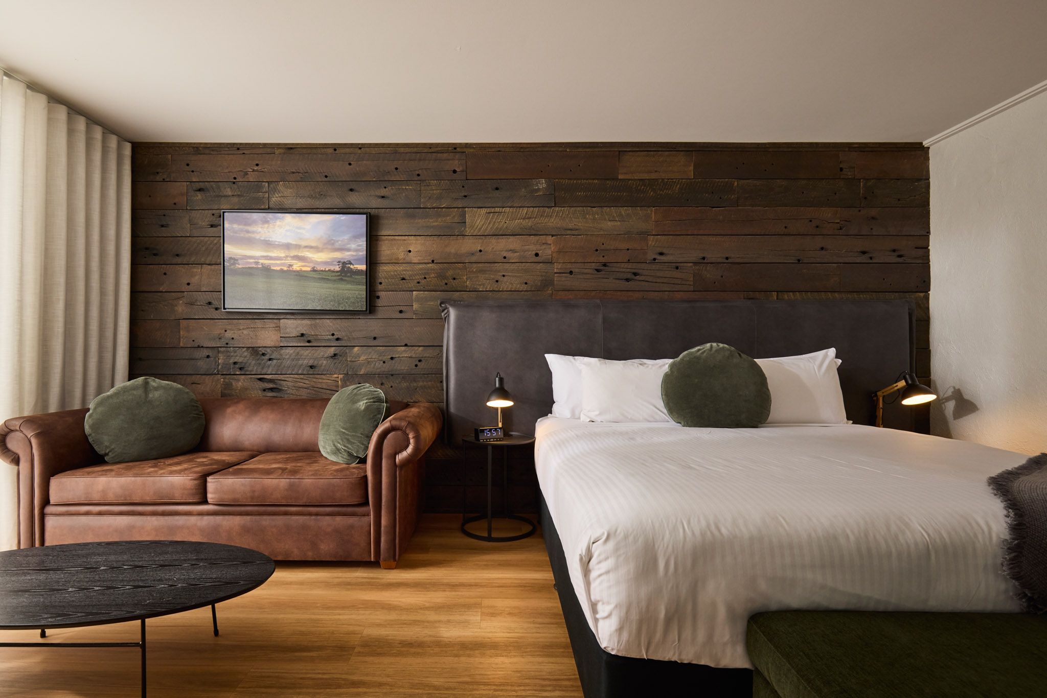 Experience modern wine country luxury in our newly refurbished Superior Rooms, thoughtfully designed for comfort and style. Each room features a king bed (twin bedding available on request) and a convenient pull-out sofa bed, perfect for couples or families. The sleek bathroom includes a walk-in rain shower and deluxe eco-friendly amenities, offering a touch of indulgence for the conscious traveller. Relax and unwind in comfort that reflects the peaceful, laid-back charm of the Barossa.