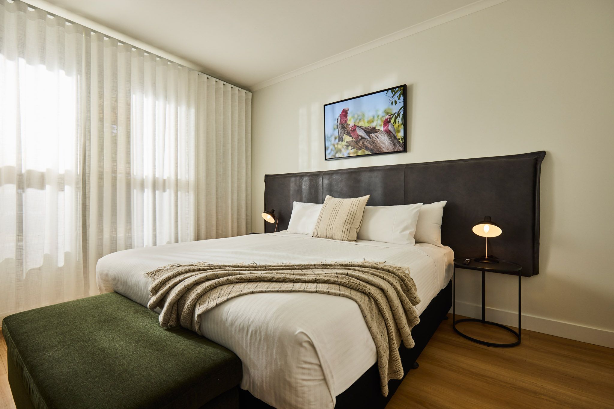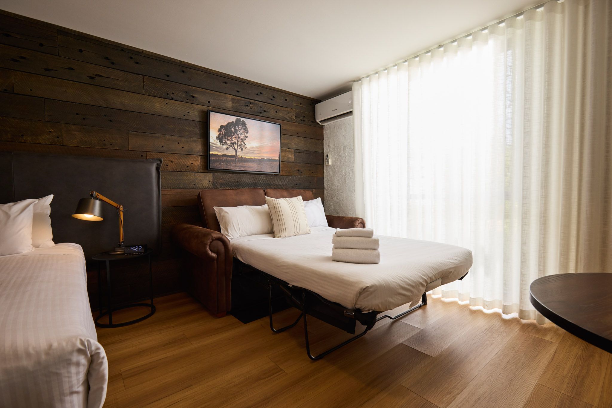 Each room is thoughtfully equipped with all the essentials, including free high-speed Wi-Fi, a flat-screen smart TV, hairdryer, iron and ironing board, alarm clock, phone, work desk and chair, and reverse-cycle air conditioning.